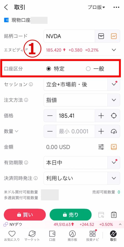 ①口座区分は確定申告の必要がない「特定」がいいでしょう。