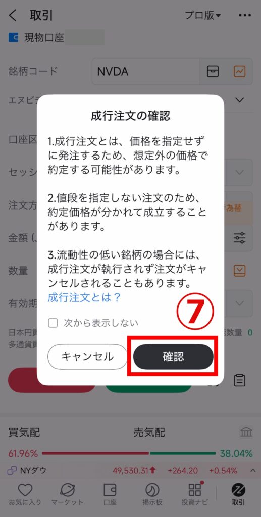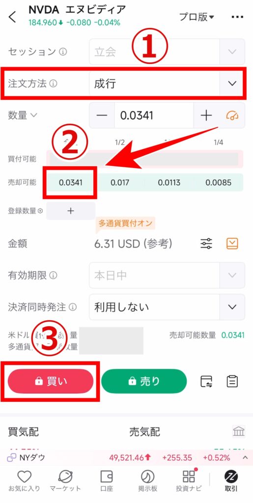 それでは、実際に「NVIDIAを1,000円分買って、売る」手順を実演します。