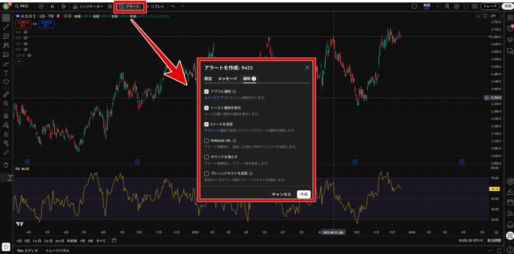手順②:RSIアラートを設定する(3分で完了)